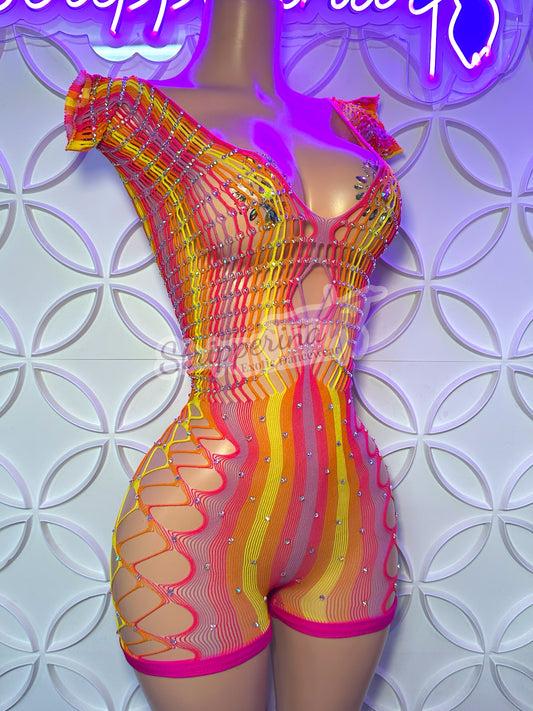 Rainbow Sherbet Fishnet Romper